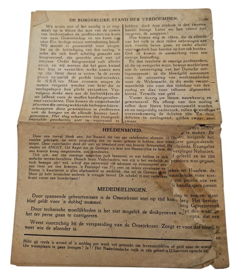dutch ww2 "de oranjekrant " resistance newspaper 30-4-1942 number 6/7 in a heavy used condition