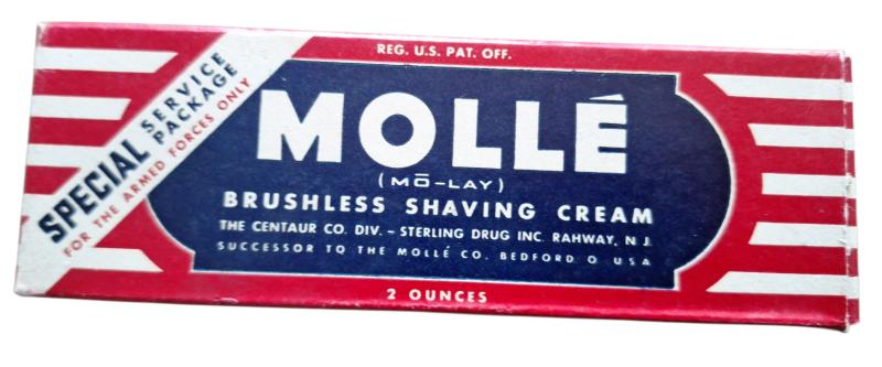 In a used condition a US WW2 Molle Shaving Cream Original carton packaging with original content. Made for the armed forces. In used condition