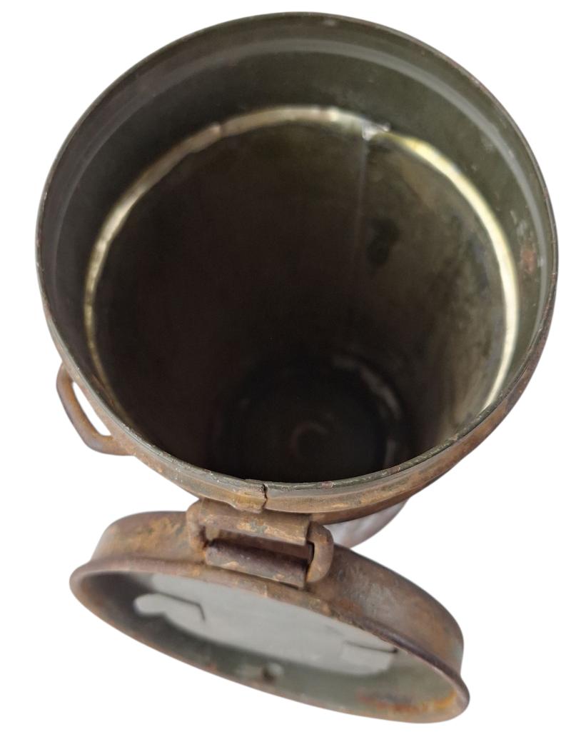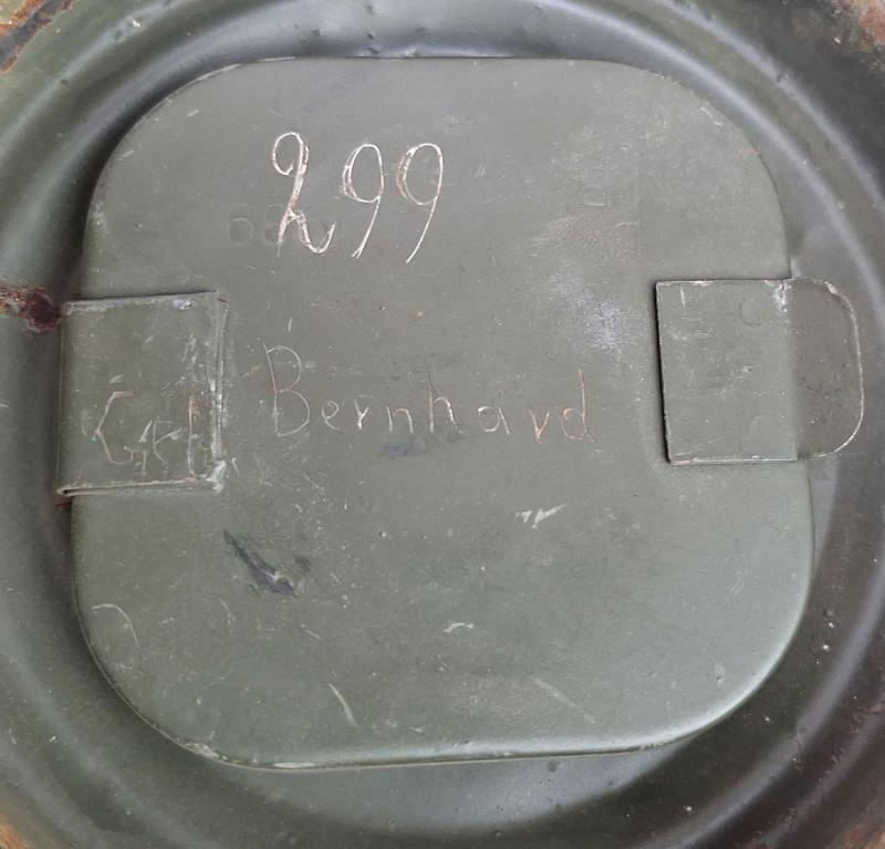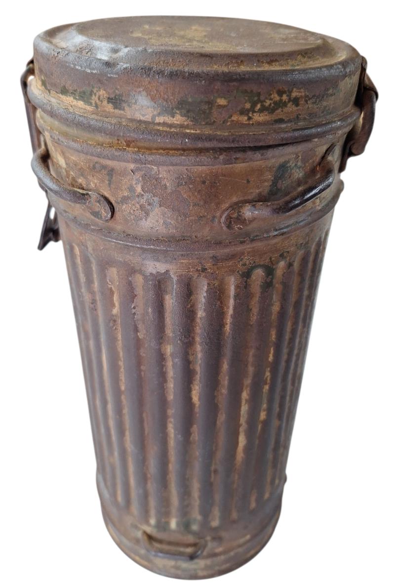 in a very nice used condition a German WWII gas mask in tan camouflage dated 1939 and marked with "D.M.B" very nice for display