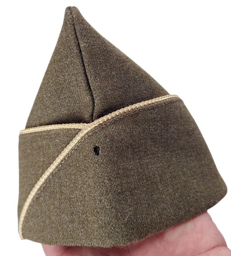 in a used condition a us ww2 garison cap white piping Quartermaster Corps no marker of size stamp available