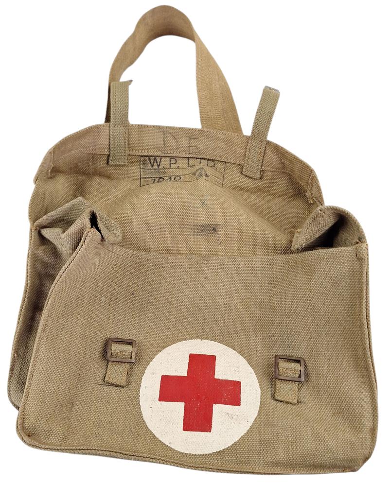 in a nice used condition a British WW2 Shell Dressing Bag very nice for display dated 1942 and nice marked very nice for display