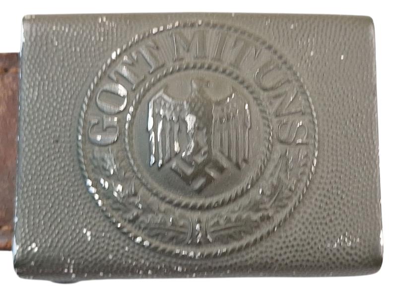 in a nice used condition a rare Wehrmacht belt buckle still 90% in its beautiful green color it is marked on the leather but hard to read the date is a 1937 very nice
