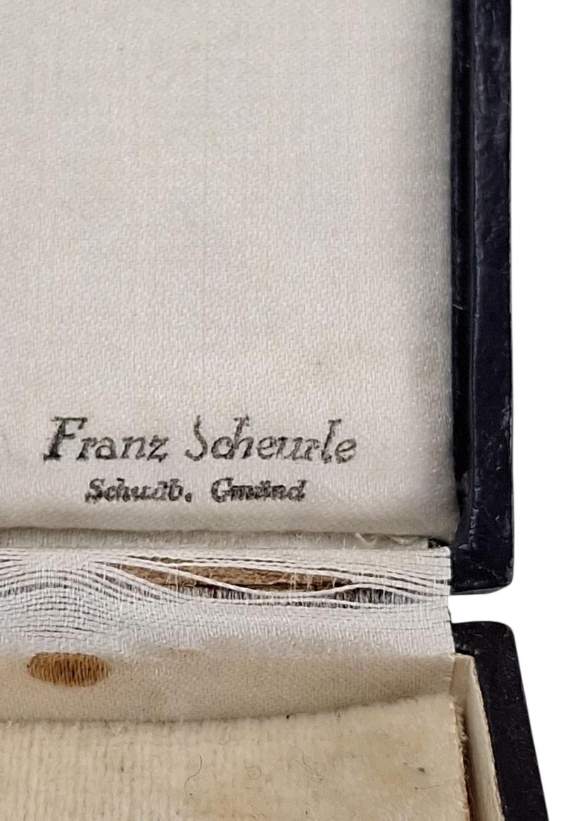 in a nice used condition a german ww2 mother cross in gold in its original box its markerd with (Franze scheurle ) in a beautiful condition