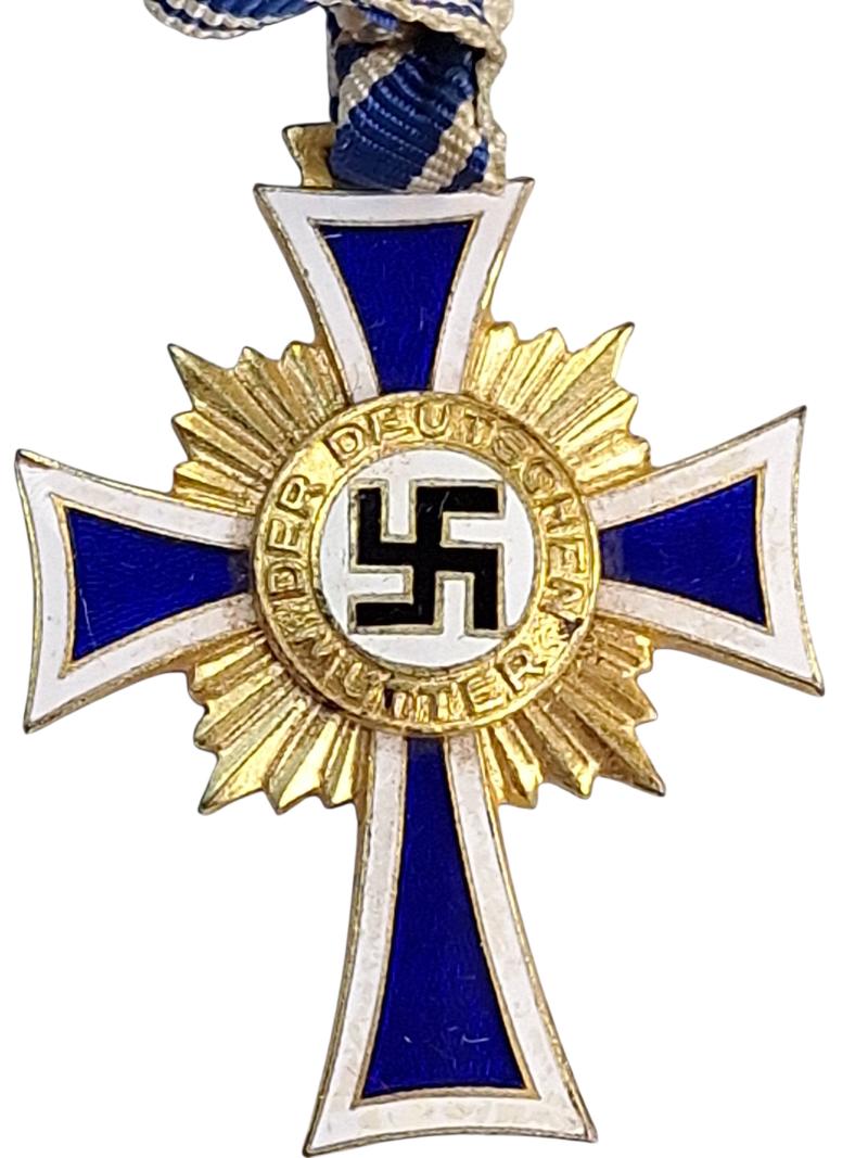 in a nice used condition a german ww2 mother cross in gold in its original box its markerd with ( R. Hauschield) in a beautiful condition