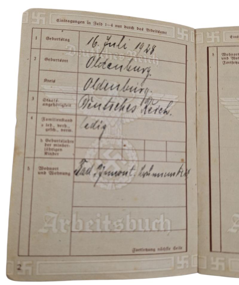 a german 2nd Pattern ww2 labor book "arbeitsbuch in a nice used conditition a german 2nd Pattern ww2 labor book "arbeitsbuch" very nice used condition