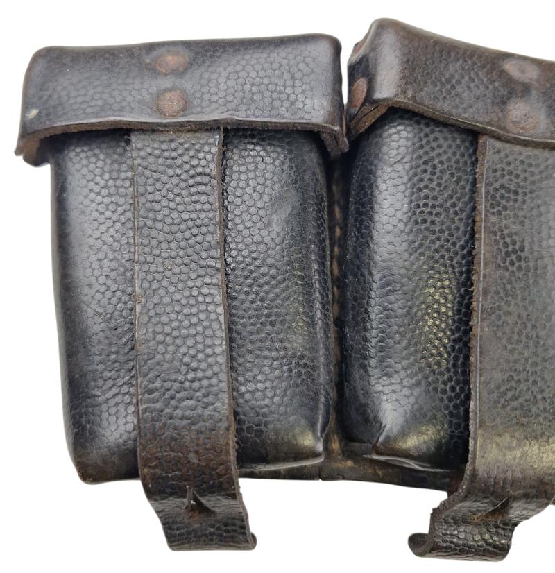 in a nice used condition a wehrmacht k98 ammo pouch .markert with a "Rbnr" all three partition are present the right strap is starting to come loose a little bit very nice for display used condition