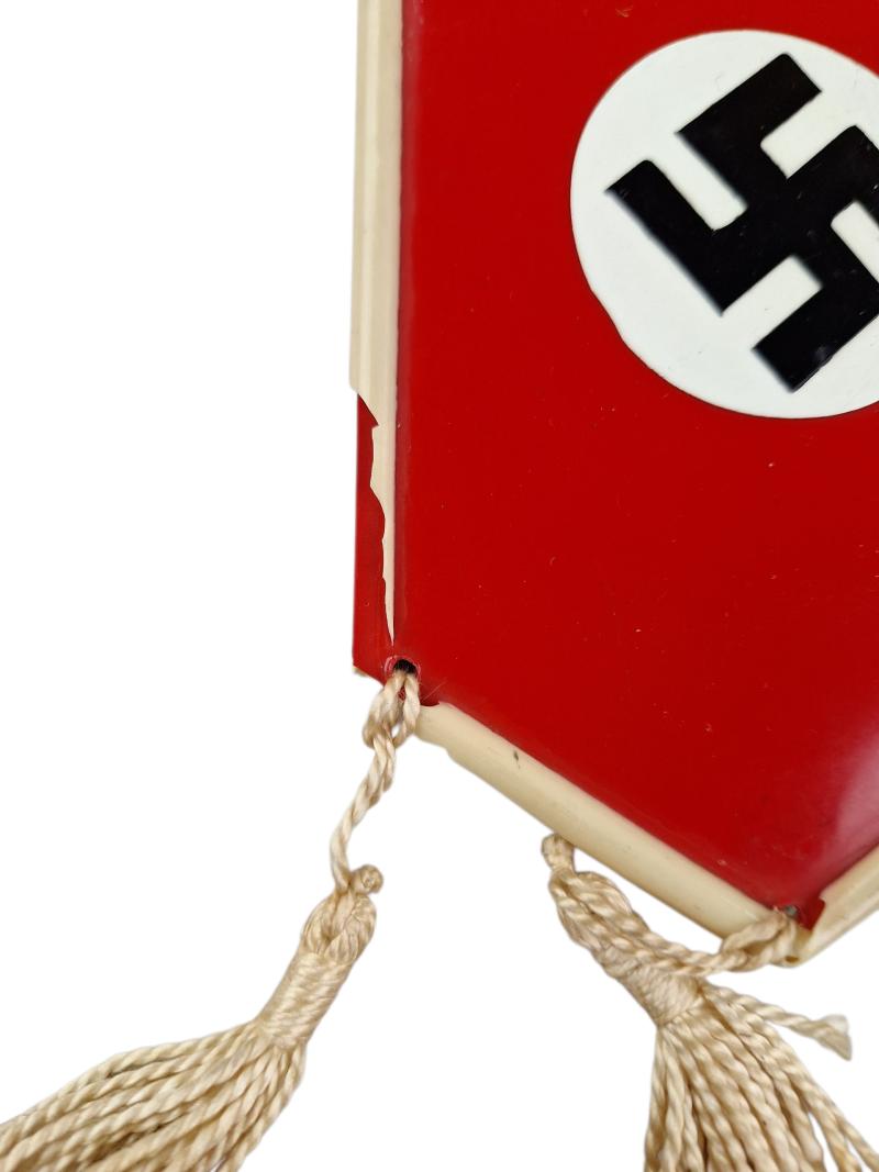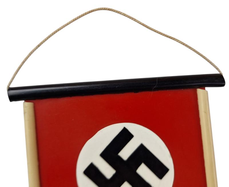 in a used condition a German swastika table banner flag in the dimensions 9x12 cm some minor damage visible in the photo very nice for display