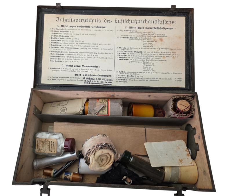 German Luftschutz Medical Kit with Contents no date market with "W.Suhngen &co in a very nice used condition nice for display