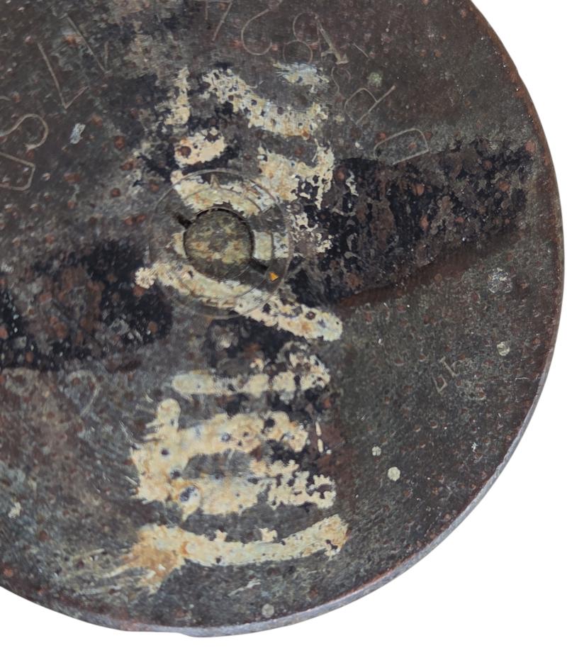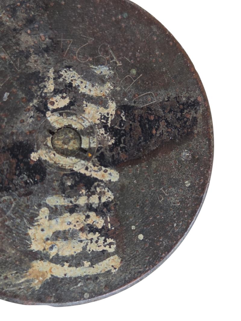 in a very nice used condition a french made but german used shell with the numbers written in white German paint 231/181 if I see it correctly very nice for display