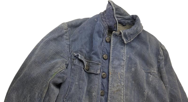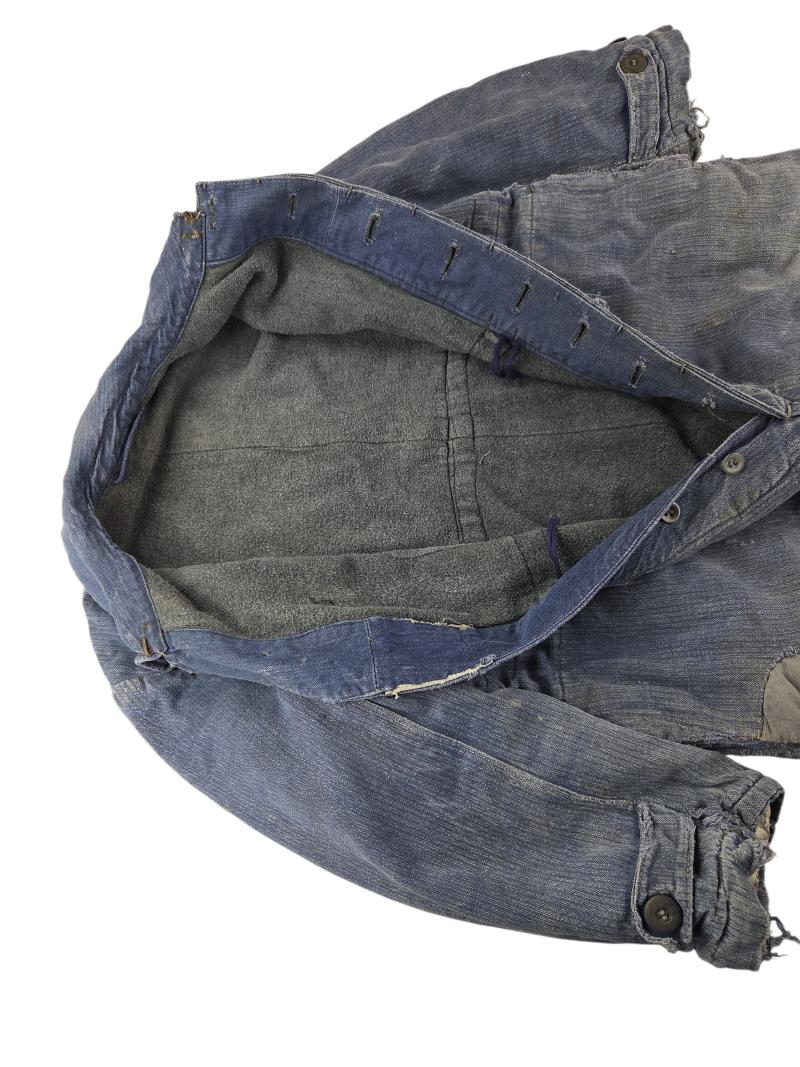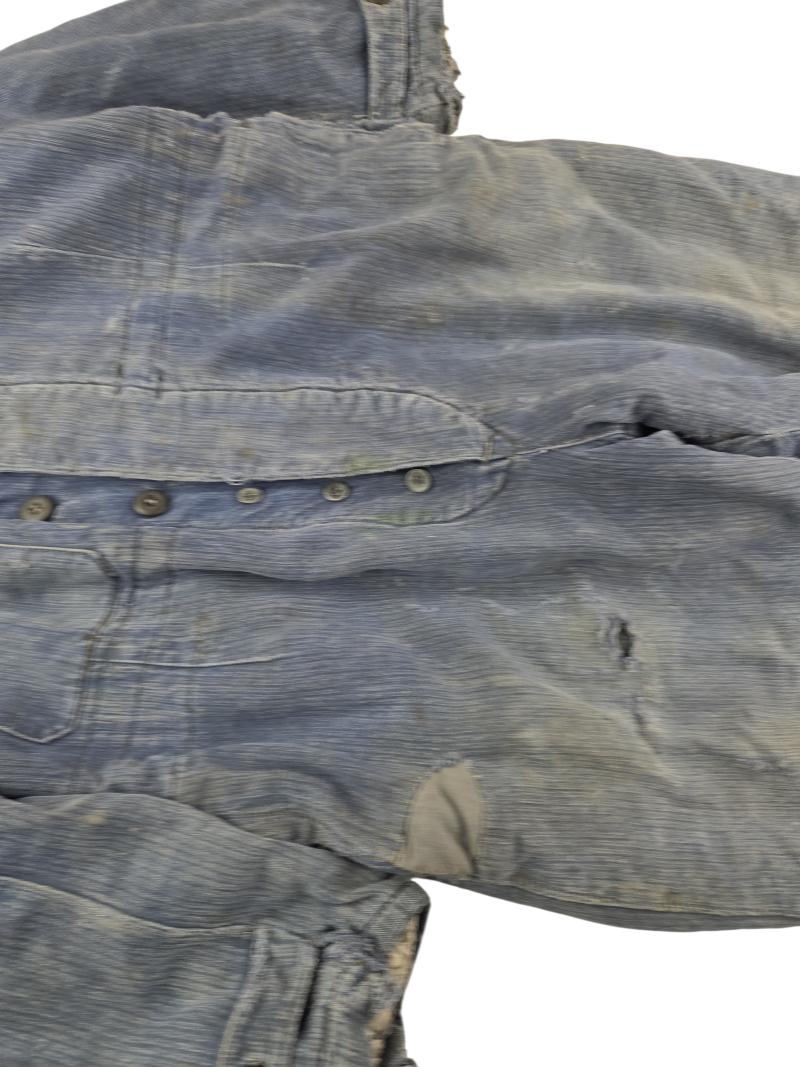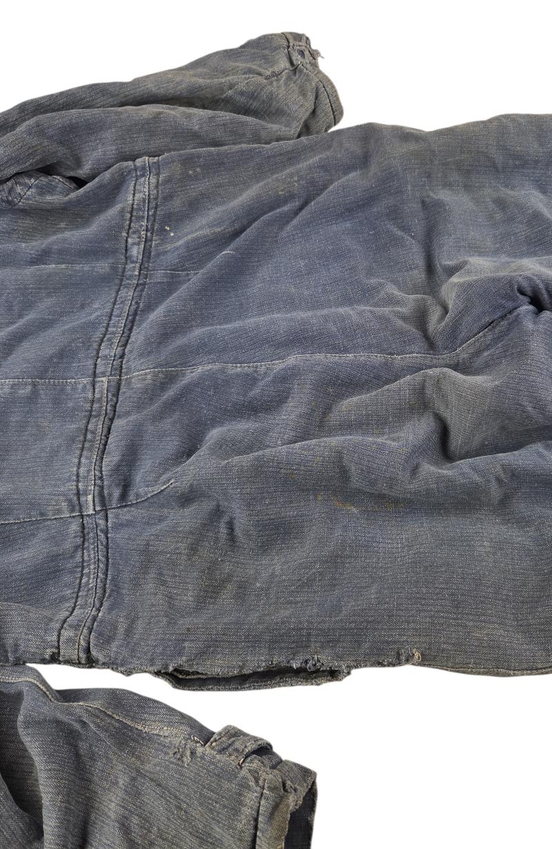 in a heavy used condition a German WWII Luftwaffe overalls it has no marker or date, but it is nice for display There are a few traces of use shown in the photo the user has made 2 hand pockets very nice for display
