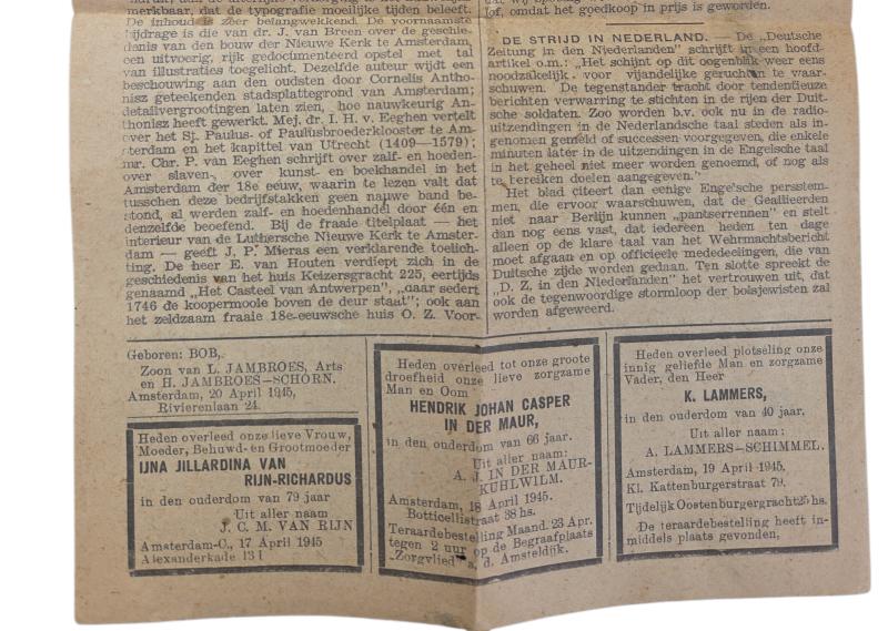 in a nice used condition a small Dutch ww2 newspaper in "algemeen handelsblad " apr -21-1945
