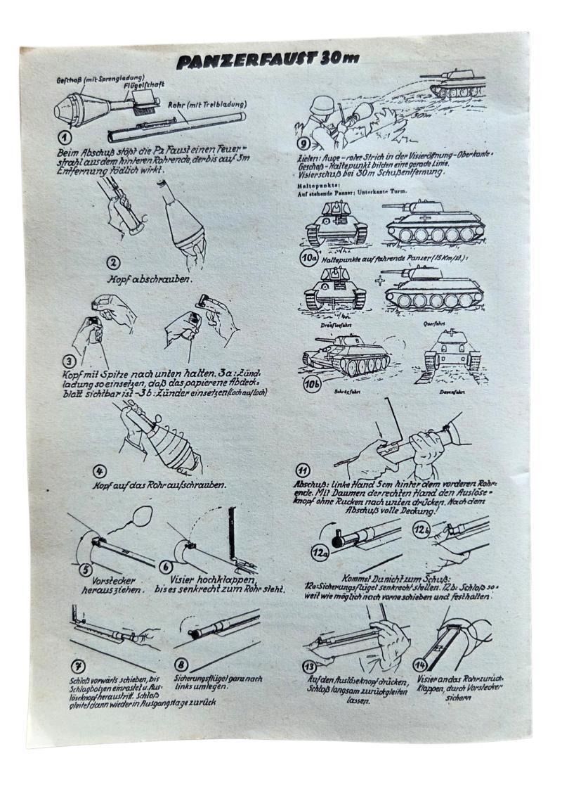 A German panzerfaust manual in perfect condition. for the 30 and 60 meters in mint condition nice for a display