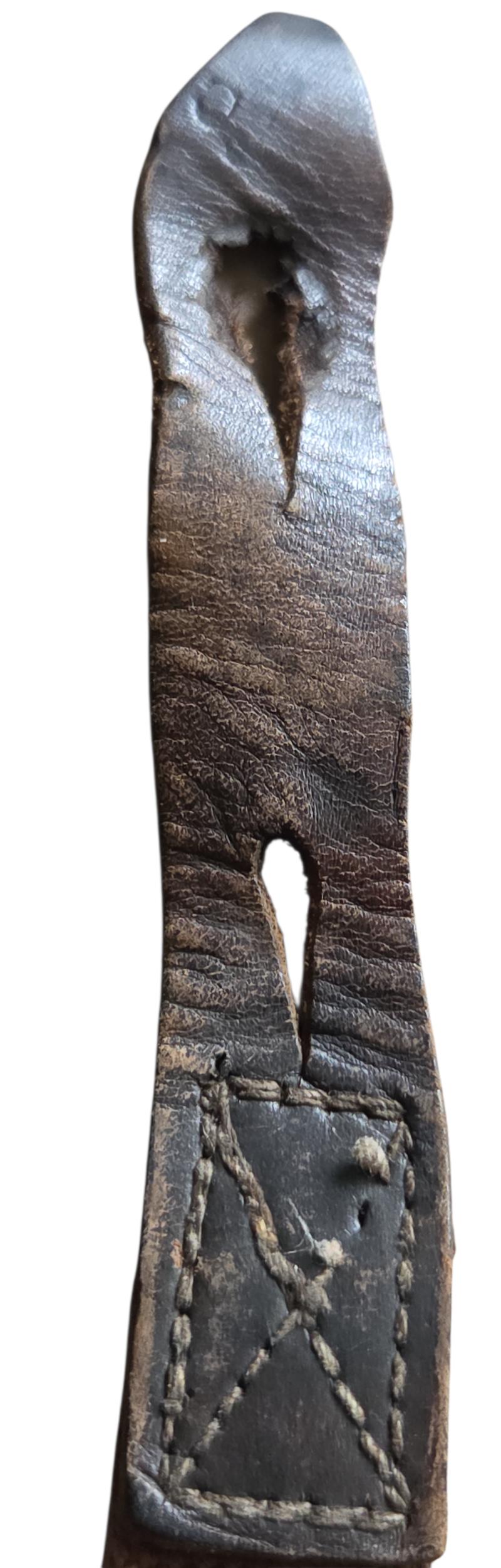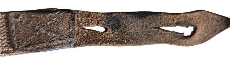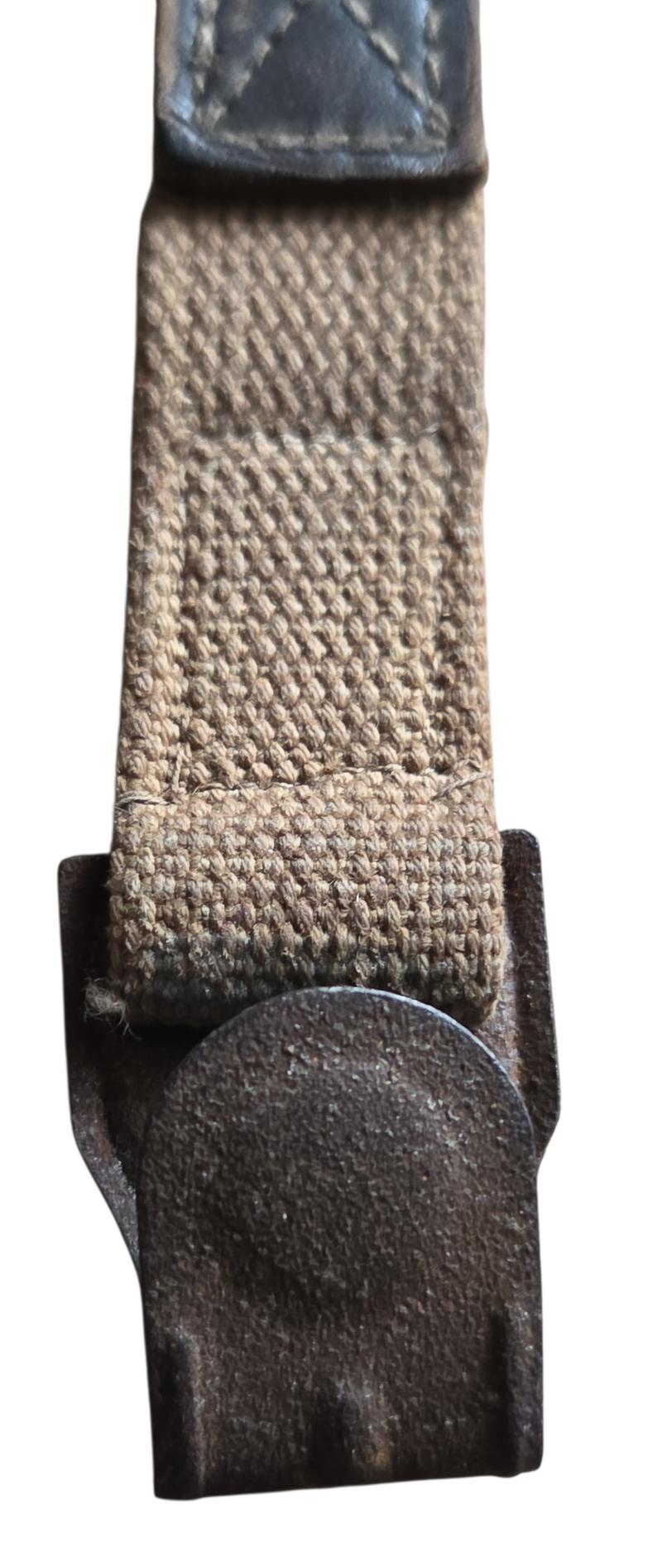 Very nice used condition original Wehrmacht short gas mask canister strap. Correct WWII-period construction. The strap shows light, honest wear consistent with age and service use. Button is missing, otherwise a solid example.