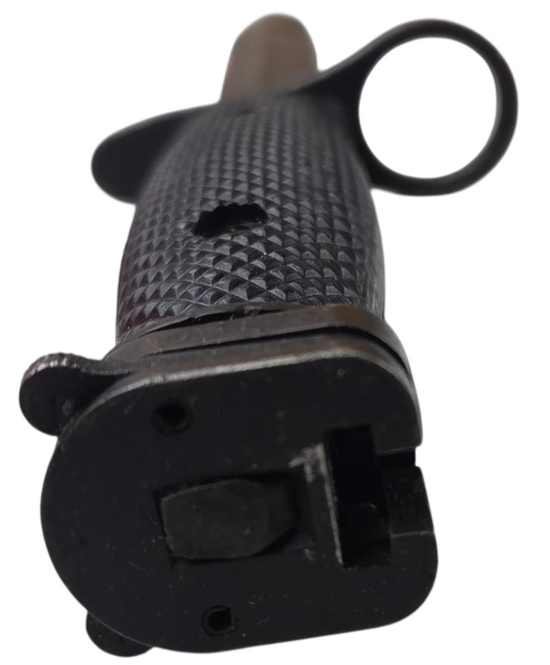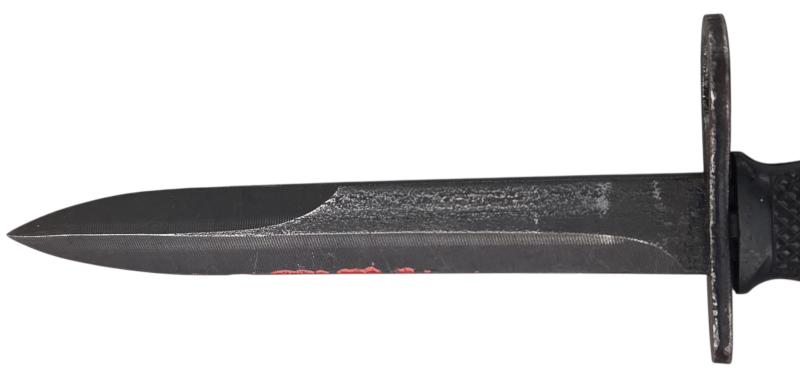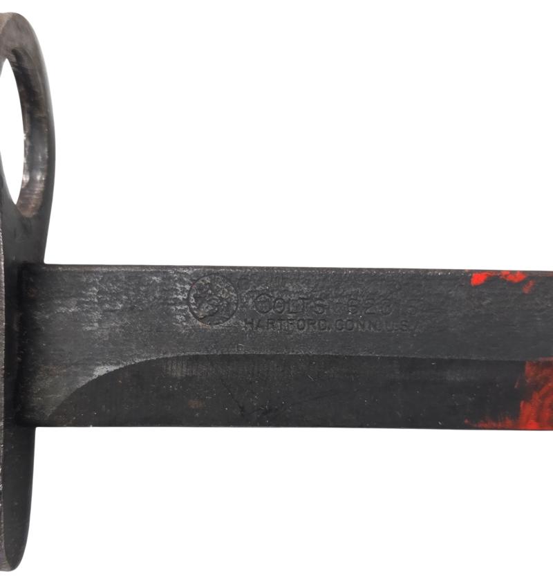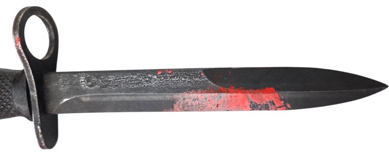 Original M7 bayonet designed for the M16 assault rifle. The bayonet is in used condition, showing normal signs of age and service. Some red paint is present on the blade. Overall a solid example, very nice for display or a Vietnam War collection.