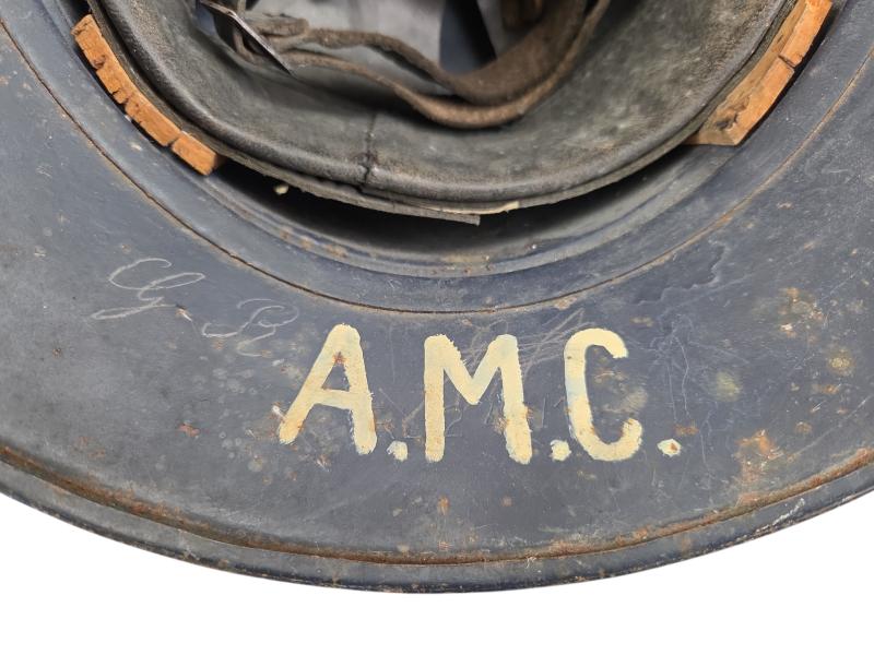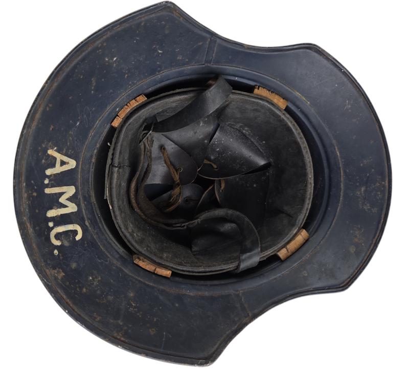 very nice used black gladiator type luftschutz helmet. with its Original liner and leather helmet strap