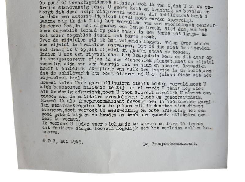 in a used condition a Dutch letter from the Nbs from May 1945 from Ede that everyone must behave like a soldier and listen to their superior very nice for display