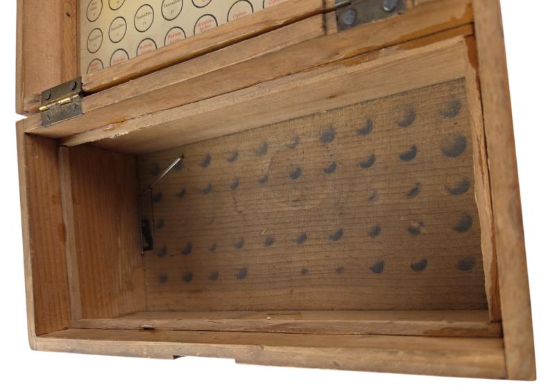in a very nice used cndition a wehrmacht medical einheitstablettenkasten with original interior and the content sticker in my opinion they glued the rack great for display