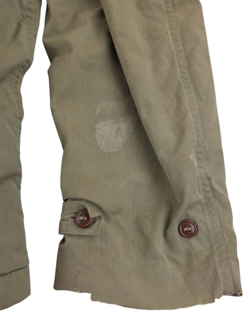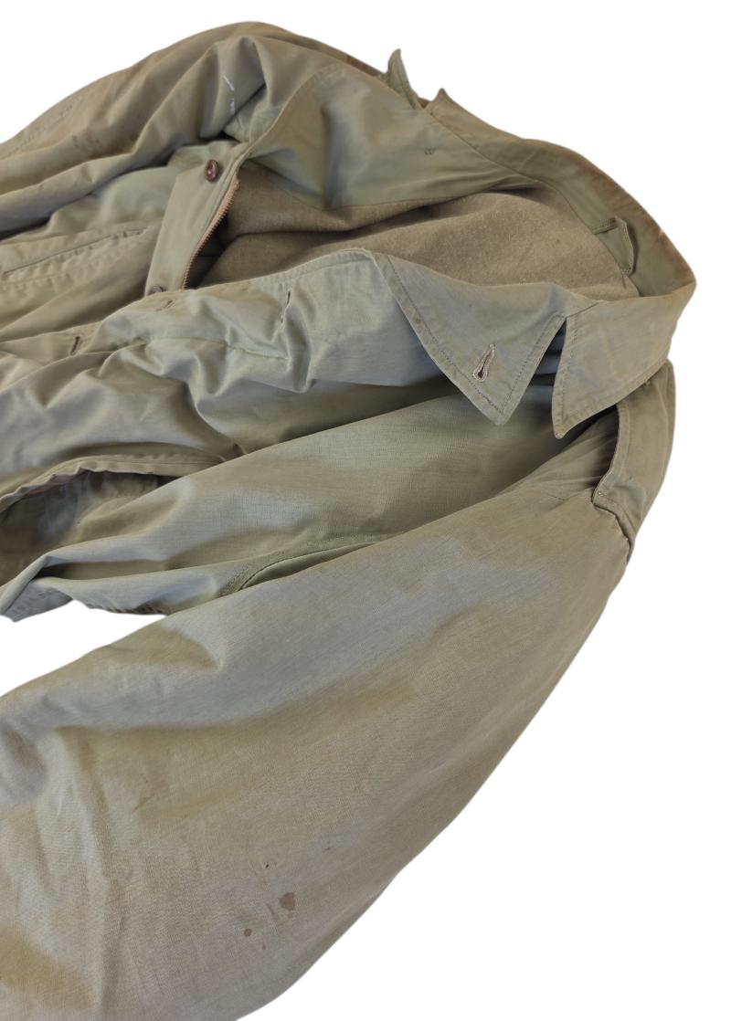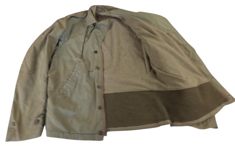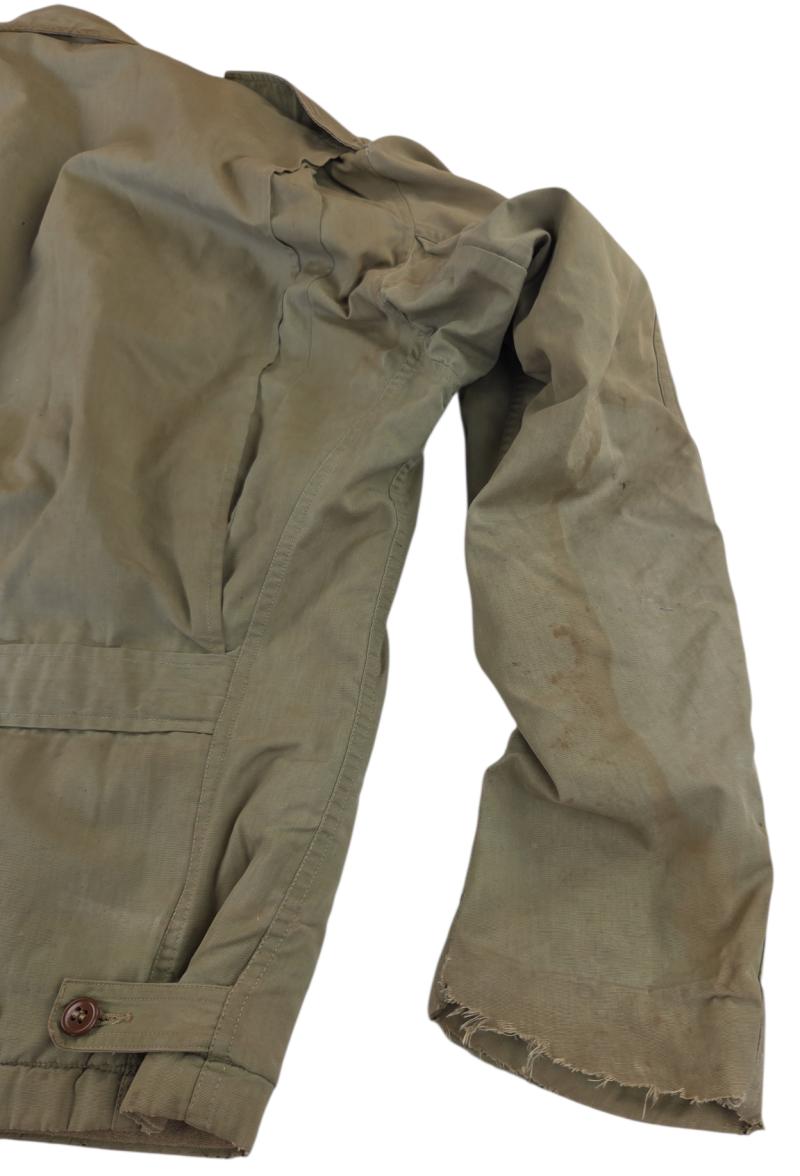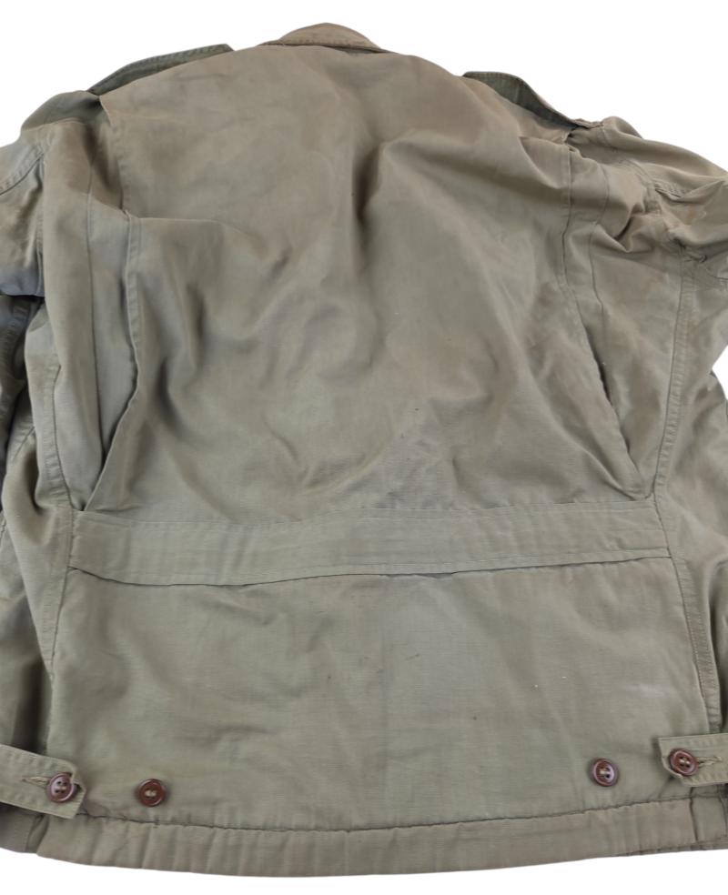 in a heavy used condition a us ww2 parson jacket Unfortunately, it does not have a size, marker, or date stamp. There is a small hole in it, though, which is visible in the photo.