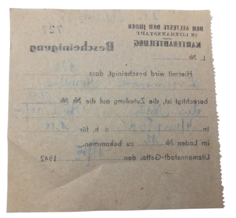 in a heavy used condition a Jewish Ghetto Litzmannstadt in Poland Bescheinigung document