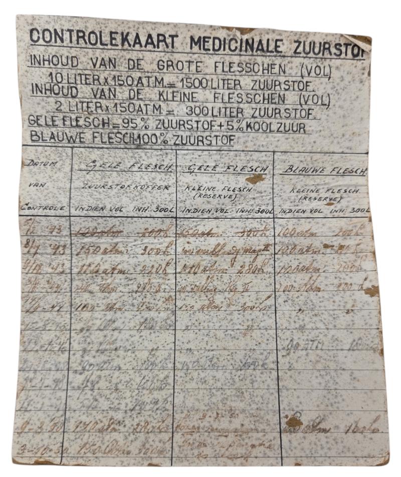 in a nice used condition a super rare dutch ww2 period air protection respiratory oxygen device.it is made in schiedam. with original card with date when used. it was put into service in 1943, beutiful for display.