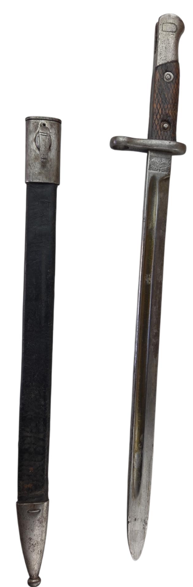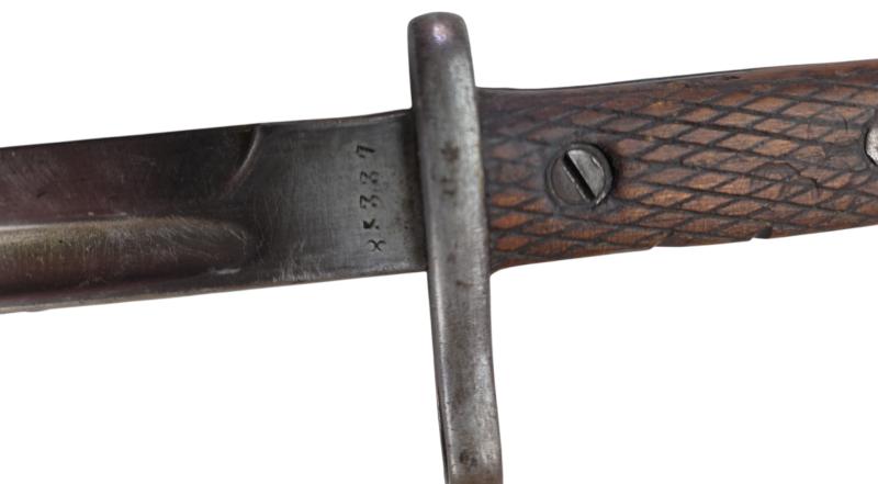 in a nice used condition A Spanish WWI M1913 bayonet for the 7mm 1916 rifle. In my opinion, the marker is Artilleria Toledo, in nice used condition.