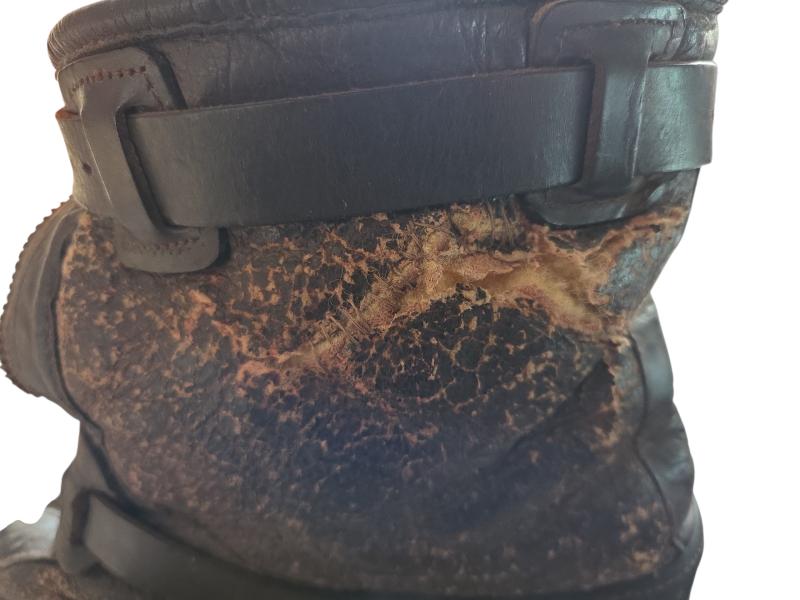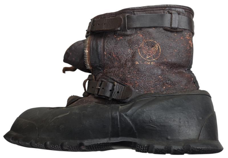 heavily used. The zipper is no longer working and there is a tear on the side (see photo). The US Air Force stamp is still faintly visible. No visible maker or date marking. The boots show clear signs of age and use but remain an authentic wartime piece.