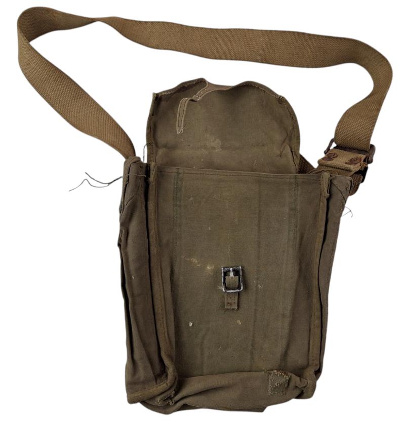 in a used condition a german mg 34/42 tool pouch with user manual booklet and a equipment strap in a brown