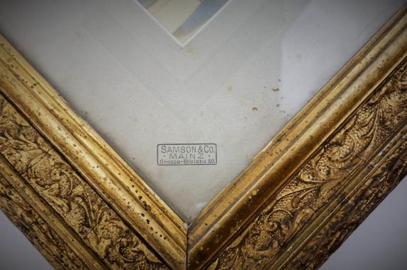 a very nice Original German WW1 picture from a soldier in its original frame in the 38.cm x 45 cm size it is marked with samson & co from mainz very nice for you ww1 collection