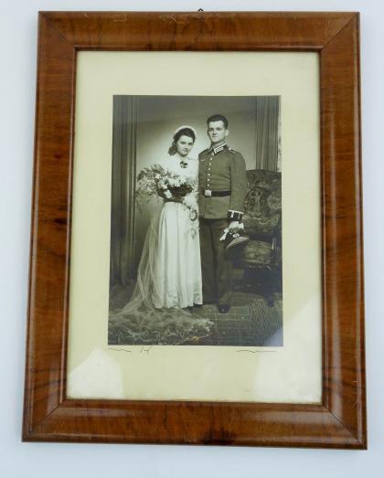 very nice picture of a couple in in their wedding clothes in the Original wooden frame in the dimensions 32 cm x 42 cm
