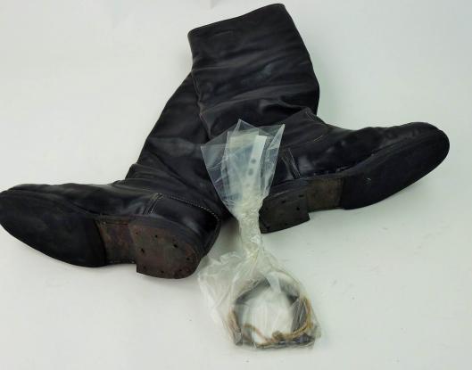 in very nice used condition a pair of german postwar boots very nice for re-enactment or if you find 100% original too expensive for your mannequin the sole has a length of 27 cm in very nice used condition