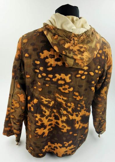 in a very nice have been there state a waffen ss parka "wendejacke in oakleaf a "eichenlaubmuster" reversibel in white there are traces of use on the white side and a few repairs on the camo side oakleaf a was the second reversibel parka to be introduced for the waffen ss very nice for your collection