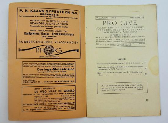 in a very nice condition a Dutch ‘Luchtbeschermingsdiens magazine" PRO CIVE " and it is dated with August 1941.very nice for display