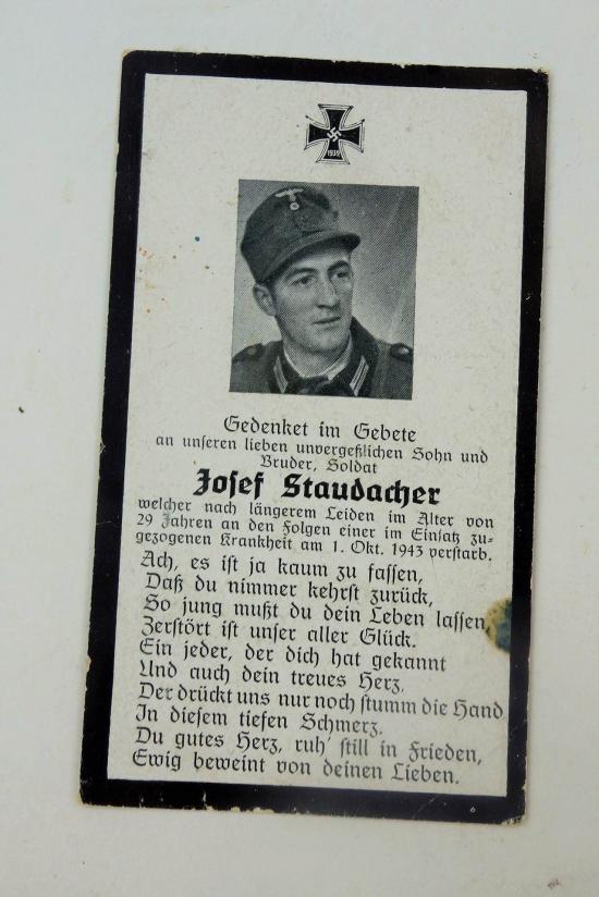 Wehrmacht Soldier Death Notice of "Josef Staudacher " passed away at age 29 on 1-10-1943"