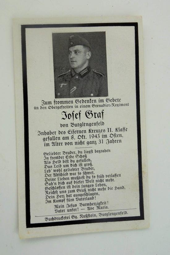 "Josef Graf "a obergefreiter passed away at age 20 on