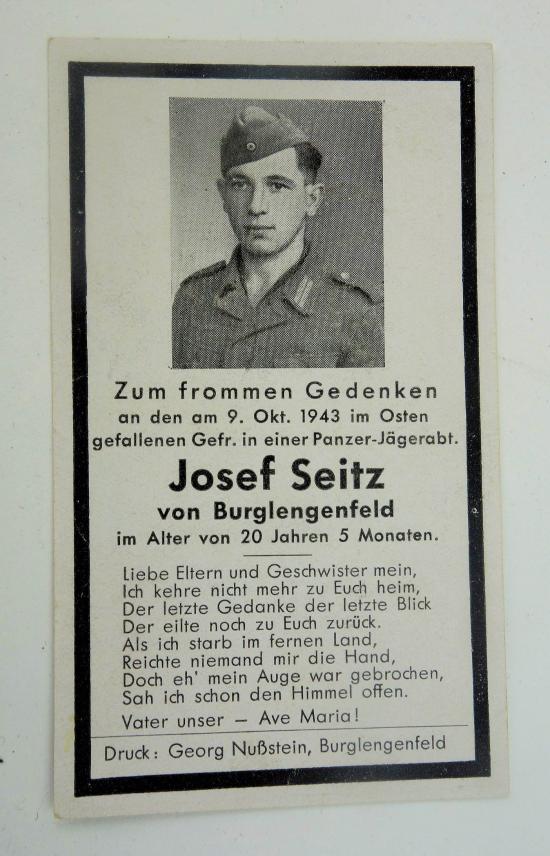 Wehrmacht Soldier Death Notice of "Josef Seitz "a gefreiter passed away at age 20 on 9-10-1943" ask for shipping costs sometimes it can be sent for less paypal can be used as a friend