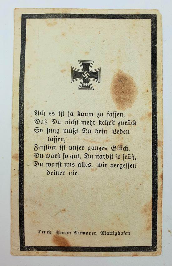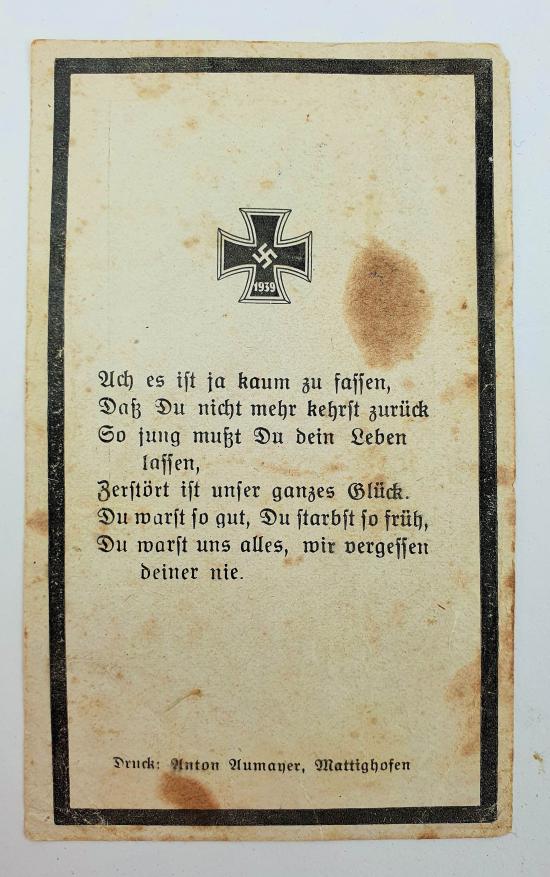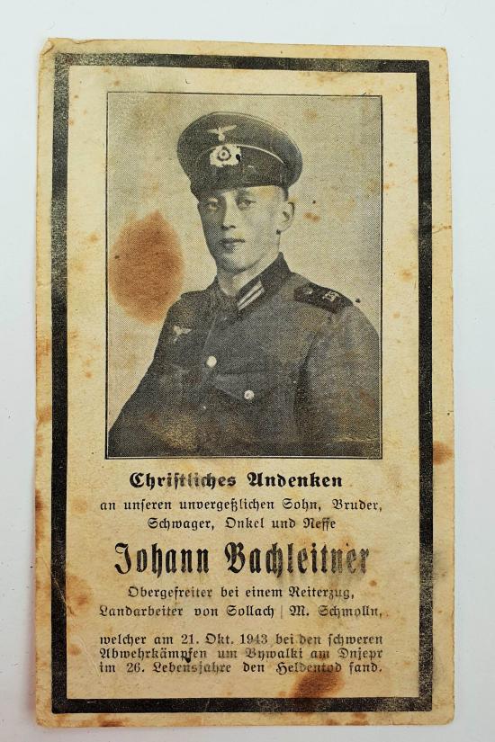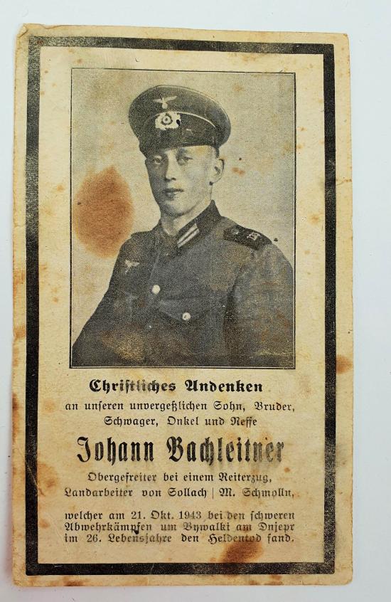 Wehrmacht Soldier Death Notice of "Johann Bachleitner "a obergefreiter he passed away at age 26 on 21-10-1943" ask for shipping costs sometimes it can be sent for less paypal can be used as a friend