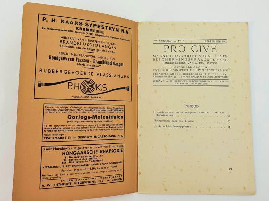 in a very nice used condition. a Dutch ‘Luchtbeschermingsdiens magazine" PRO CIVE " and it is dated with September 1941.very nice for display