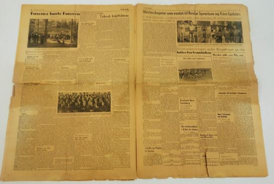in used condition a Norwegian ww2 newspaper "fritt folk " dated June 22, 1942 published in Oslo.It was the official organ of the fascist party Nasjonal Samling,there are a few cracks in it, can be seen from the photo in nice used condition