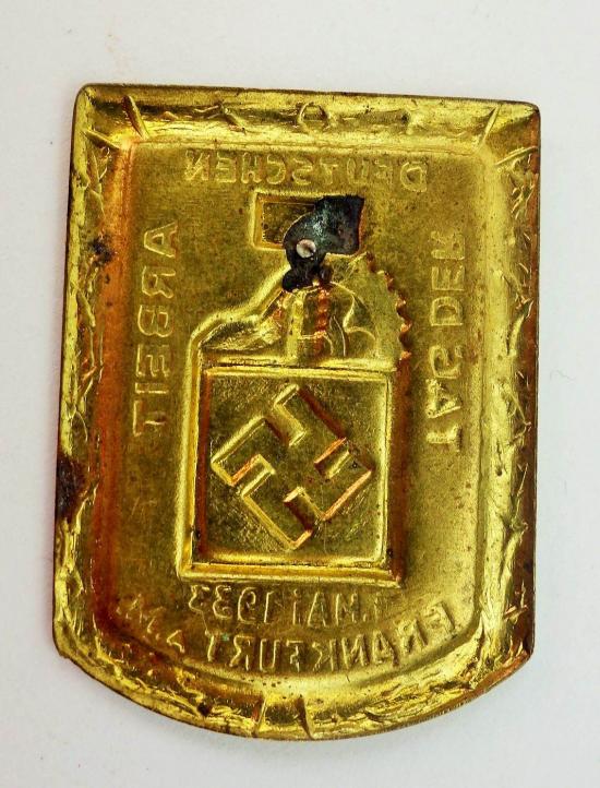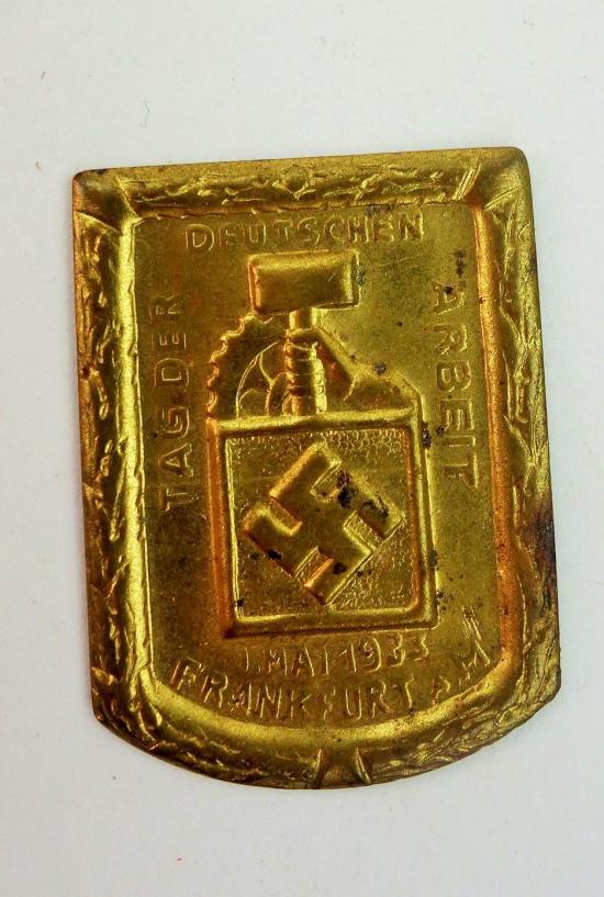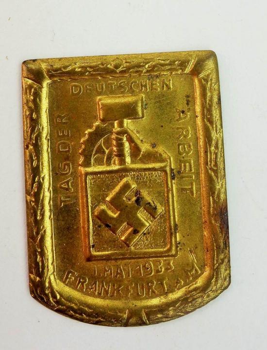 in a nice used condition a tag der deutschen arbeit 1933 "Frankfurt a.M.". he only misses his pin but very nice for display