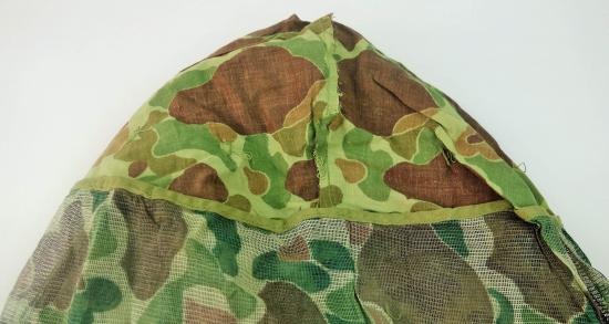 Original WWII camo pattern. Used by the Marine Corps to protect against mosquitos it was also used by snipers he has no marker or date very nice for display