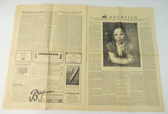 in a very nice used condition german ww2 newspaper "Das reich" with date "August 13, 1944" with a piece about the v1 very nice for display
