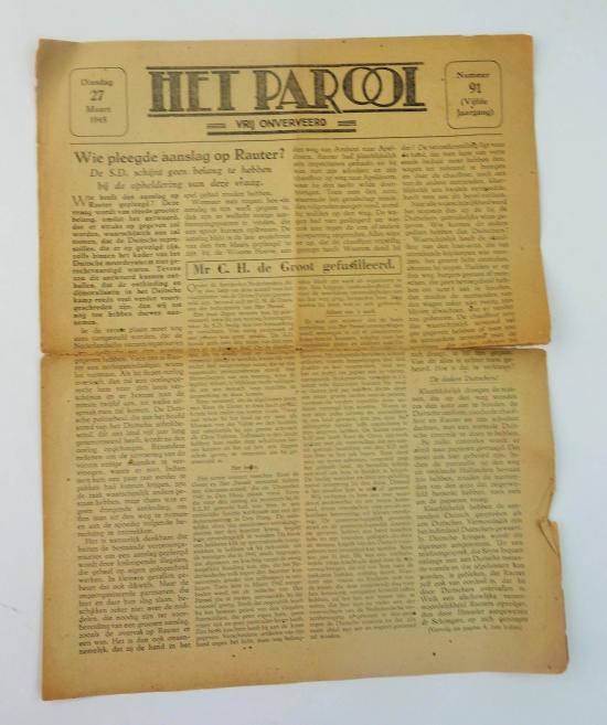 in a nice used condition a dutch ww2 resistance newspaper "het parool "it is dated Tuesday March 27, 1945 in very nice used condition