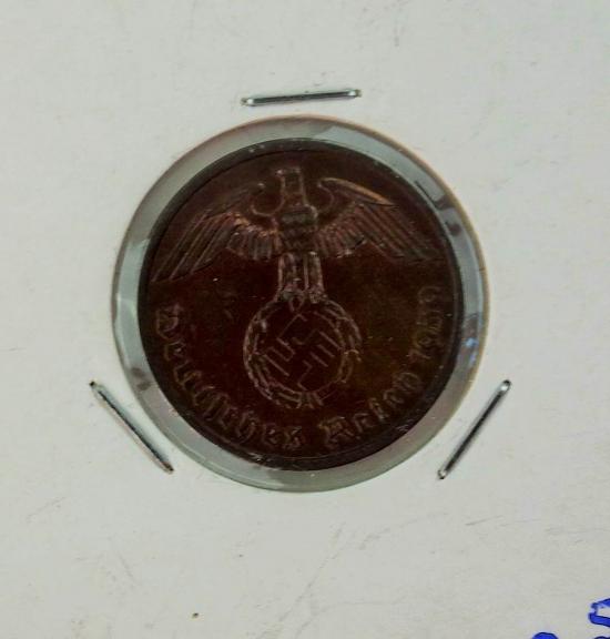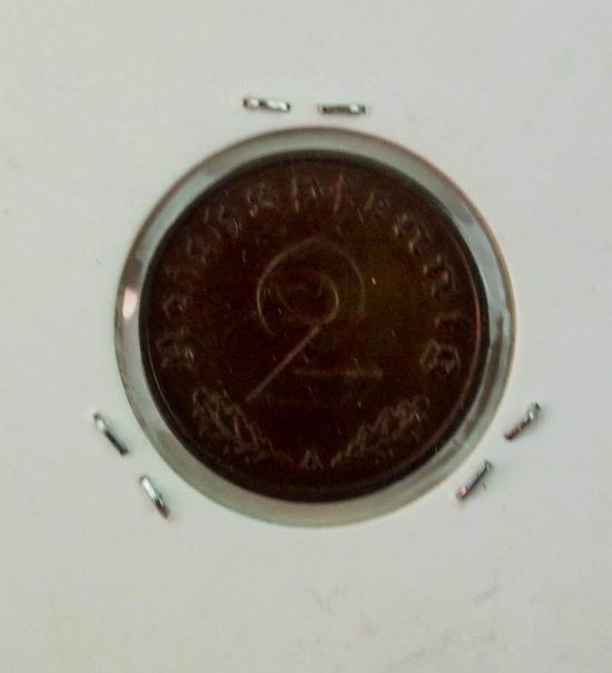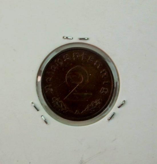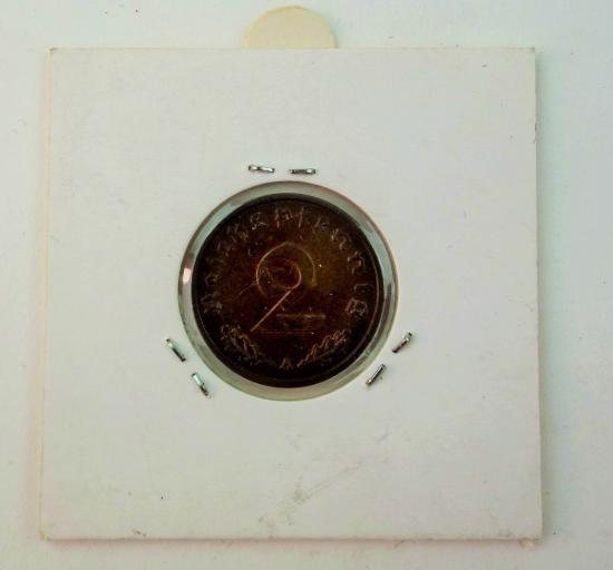 in mint condition a german ww2 reich money "2 pf " dated 1939 beautiful for display in mint condition