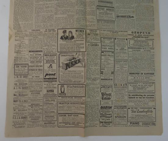 a Dutch newspaper the "het vaderland " in a used condition a Dutch newspaper dated August 26 , 1944 . in a used condition but very nice for display