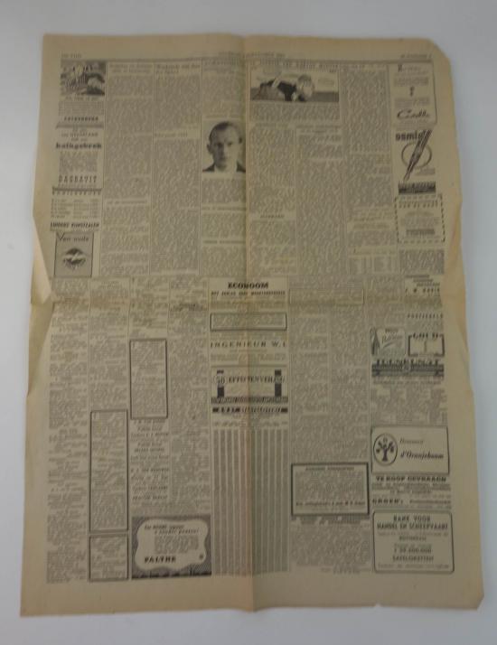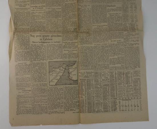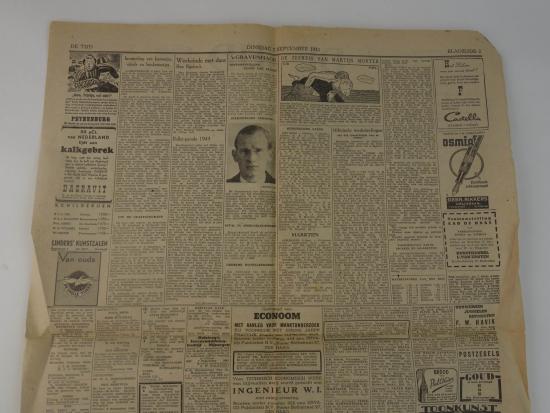a Dutch newspaper the "de Tijd " in a used condition a Dutch newspaper dated September 7 , 1943 . in a used condition but very nice for display