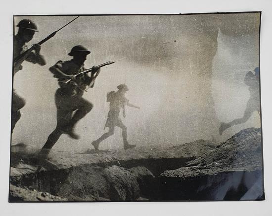 in a very nice used condition a british ww2 press picture off a group soldiers attacking in the dimensions 24cm x 18 cm in very nice condition