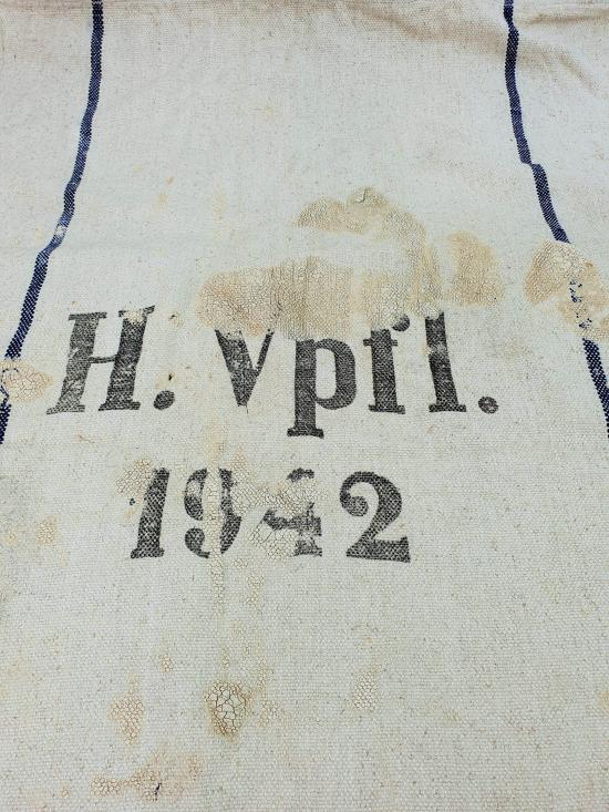 in great used condition a german Heeresverpflegungssack 1942 is marked “H. Vpfl.” 1942 this is the version with the swastika very nice for display in used condition