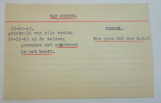 in very nice condition a Dutch WW2 "N.S.B" card tray dokument with dates and person who were involved with attack and robberies in the Netherlands during the occupation nice for further research