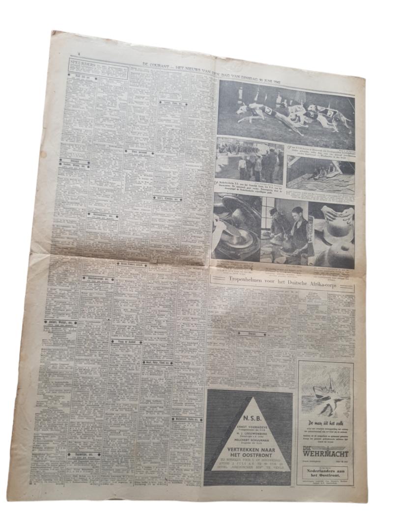 a Dutch ww2 newspaper the "het nieuws van den dag " in nice used condition a Dutch ww2 newspaper the "het nieuws van den dag " very nice for display June 30, 1942