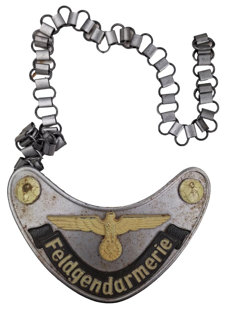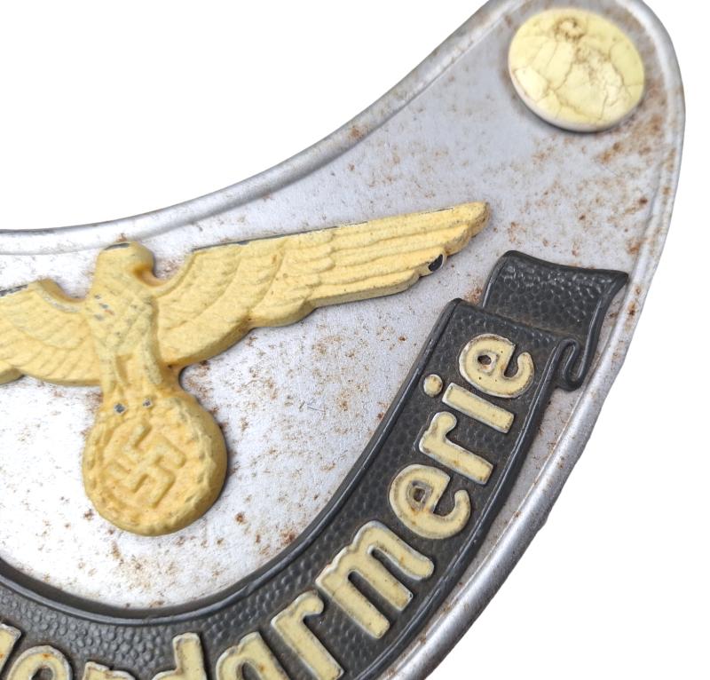 in a used condition a rare german ww2 feldgendarmerie Gorget the gorget still glows in the dark it is a mid to late war edition with a cloth back very nice for display